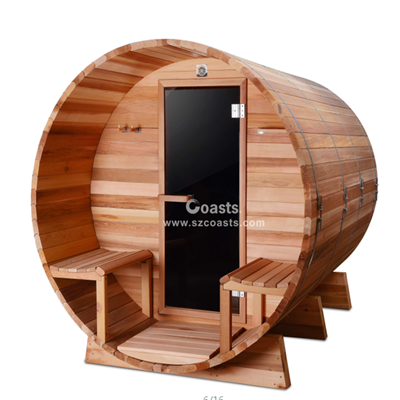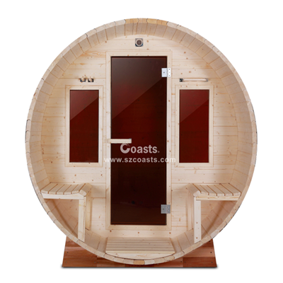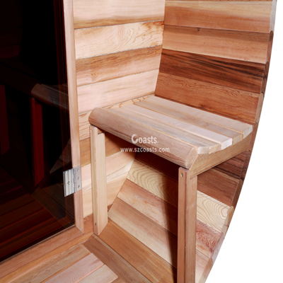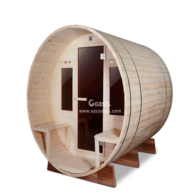 方便用户的出入,在桶的其中-端特意安装了一扇门。因为这款桑拿房