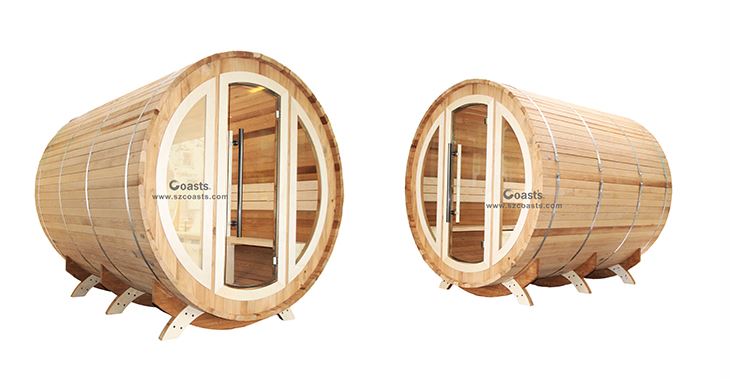 Barrel sauna is different from traditional indoor sauna room, it is large and rounded like barrels, with a door at one "end" of the barrel for entering and exiting the sauna. The barrel sauna room is specially designed for outdoor use so it does not take a room inside the house and give customer more flexibility. We only choose the best Nordic pine or Canada western red cedar for of its strength, stability and long lasting beauty. It is naturally resistant to decay and insect damage. The barrel saunas are so beautiful that they become great ornament for your garden or backyard environment. We proudly introduce our new stylish canopy barrel sauna which come with sheltered porch and external seating, so customers could enjoy the fresh air and beautiful view, and the barrel sauna also provides a perfect party space with your swimming pool or outdoor SPA.