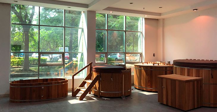 We select the best westem red cedar for its natural resistance to rusts and insects. Customer could choose the wood-burming heater or electric water heater. Filtration system and massage system is also available.