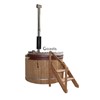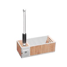 As an outdoor hot water tank, stainless steel is used as the cylinder body and hot water heater, and carbonized high-quality wood is used as the external decorative plate of the tank, which is beautiful and durable.